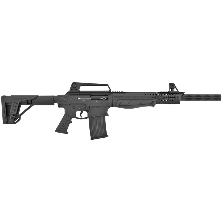 Hatsan Escort SD12 это полуавтоматический дробовик, выполненный в современном дизайне. Его возможности и эргономика позволяют использовать в различных ситуациях, начиная от охоты и развлекательной стрельбы до самозащиты и применения для выполнения тактических задач. Синтетическое цевье ThermoDefend Technology отличается прекрасной эргономикой. Рукоятка пистолетного типа покрыта мягким резиновым покрытием, повышающим надежность удержания. Фиксированный тактический приклад оборудован регулируемым по высоте гребнем. Имеются направляющие Picatinny со всех сторон цевья, что дает стопроцентную свободу в установке дополнительных аксессуаров.