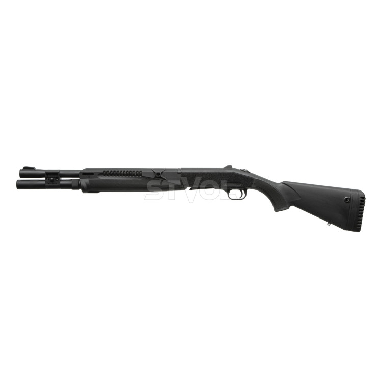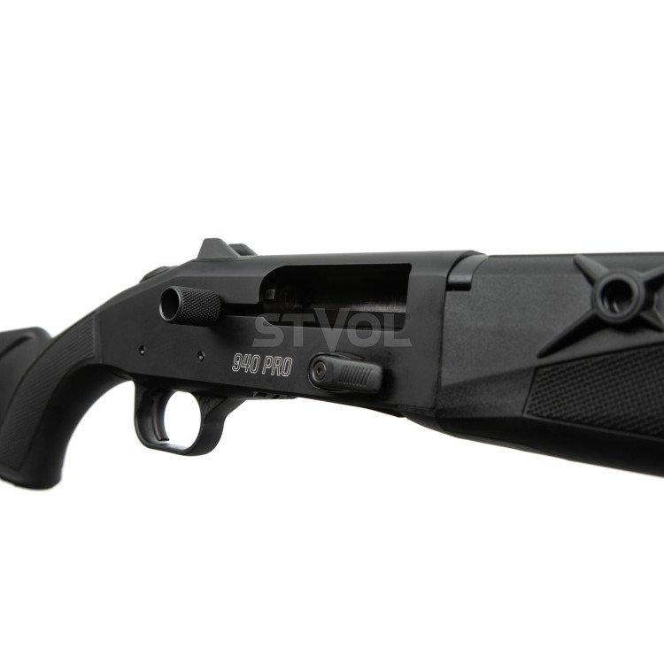 Mossberg 940 Pro Tactical SPX — ружье охотничье тактического класса с акцентом на модульность. Корпус с высверленными и нарезанными крепежными отверстиями рассчитан на прямую установку коллиматоров формата Shield RMSc, прилагаются три дополнительных монтажных пластины под стандарты RMR, Docter и Leupold, что расширяет выбор прицельной оптики и конфигураций. Передняя рукоять реинжинирована: комбинированный передний тактический блок включает тепловой экран, несколько посадочных мест M-LOK и быстросъемные QD-порты для точечной фиксации аксессуаров.