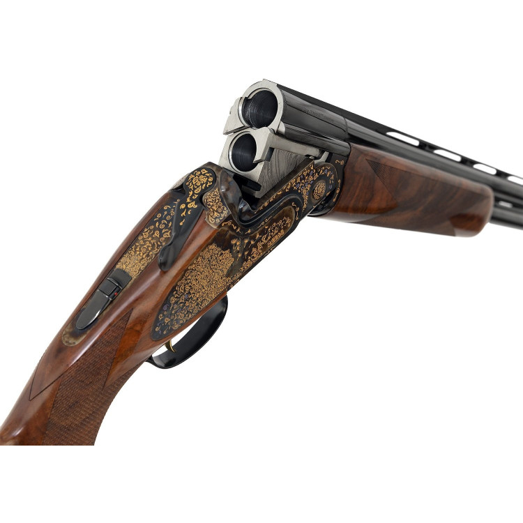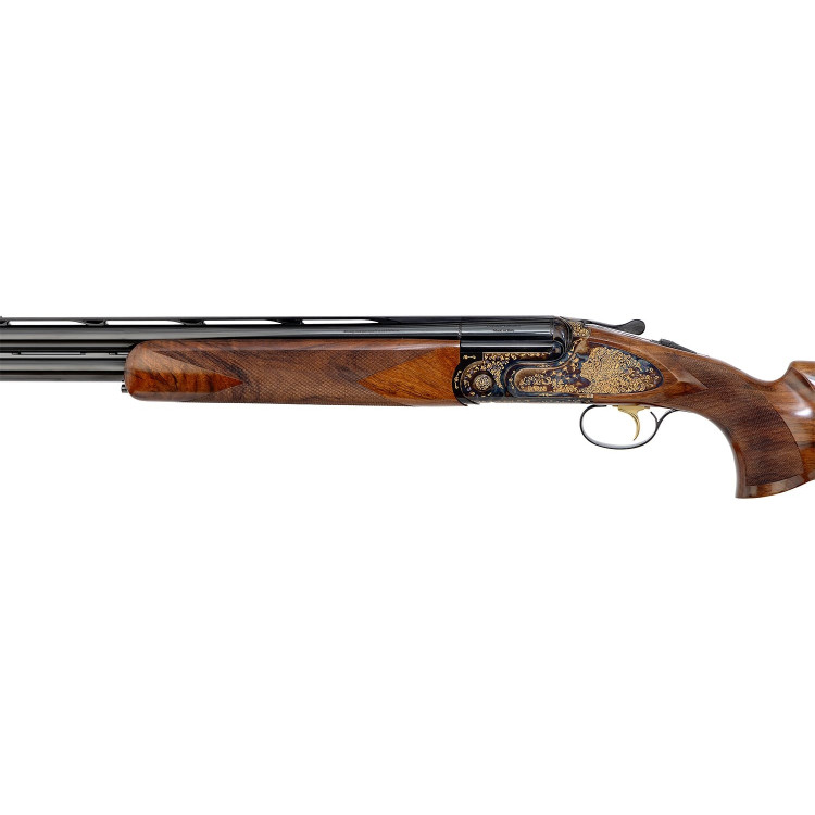 Эстетическая составляющая ружья также заслуживает внимания. Модель отличается оригинальной гравировкой на боковых пластинах, изображающей женский профиль, плавно переходящий в цветочные узоры. Металлические элементы корпуса имеют покрытие Invisalloy™, что защищает их от коррозии и придает дополнительную долговечность. Ложа и цевье выполнены из турецкого ореха высшего сорта с полуглянцевой масляной отделкой, что подчеркивает естественную текстуру древесины и делает ружье визуально привлекательным.