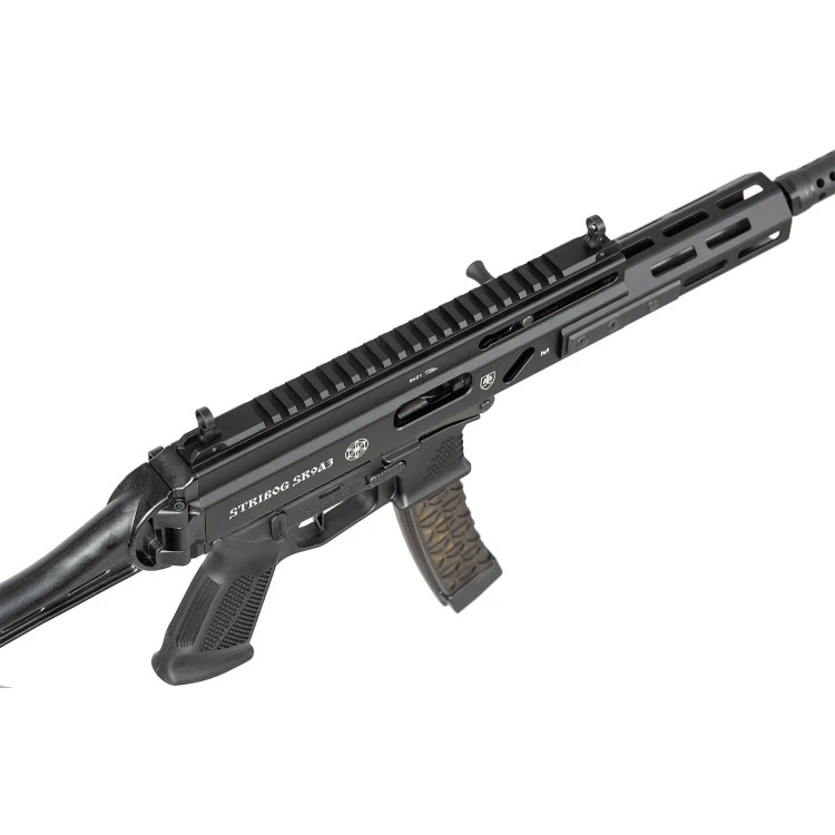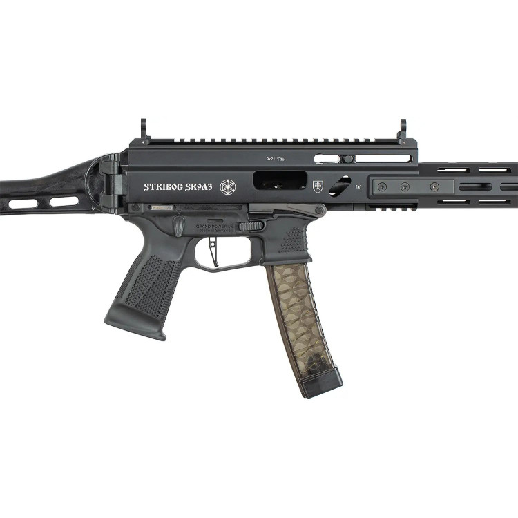 Карабин Grand Power Stribog SR9A3 создан под патрон 9х21. Модель развивает концепцию предшественников, сохраняя их эксплуатационную прочность. Конструкция интегрирует ряд новых технических решений, направленных на модернизацию основных узлов.Ствольная группа имеет длину 25.4 см. На дульной части установлен компенсатор, снижающий энергию отдачи. Это положительно влияет на стабильность удержания при серийной стрельбе.Затворный узел функционирует по схеме полусвободного затвора. В его механизм интегрирован передаточный ролик и затворная задержка. Рукоятка заряжания фиксируется в переднем положении во время ведения огня, что повышает безопасность эксплуатации.Цевье оборудовано интерфейсом M-LOK для монтажа дополнительного снаряжения. Верхняя часть автомата содержит полноразмерную планку Пикатинни. На нее возможна установка нескольких типов оптических и коллиматорных прицелов.Нижний сектор цевья включает короткую секцию Пикатинни. Это место предназначено для крепления тактических фонарей или лазерных целеуказателей. Подобная оснастка критически важна при работе в сумерках или внутри помещений.Органы управления огнем выполнены полностью двусторонними. Данная конструктивная черта дает равный уровень эргономики для стрелков с ведущей правой или левой рукой. Приклад обладает функцией складывания.В сложенном состоянии приклада автоматически активируется блокировка ударно-спускового механизма. Штатные прицельные приспособления – мушка и целик – являются складными. Пистолетная рукоятка формирует удобный и надежный захват.- Отзывы