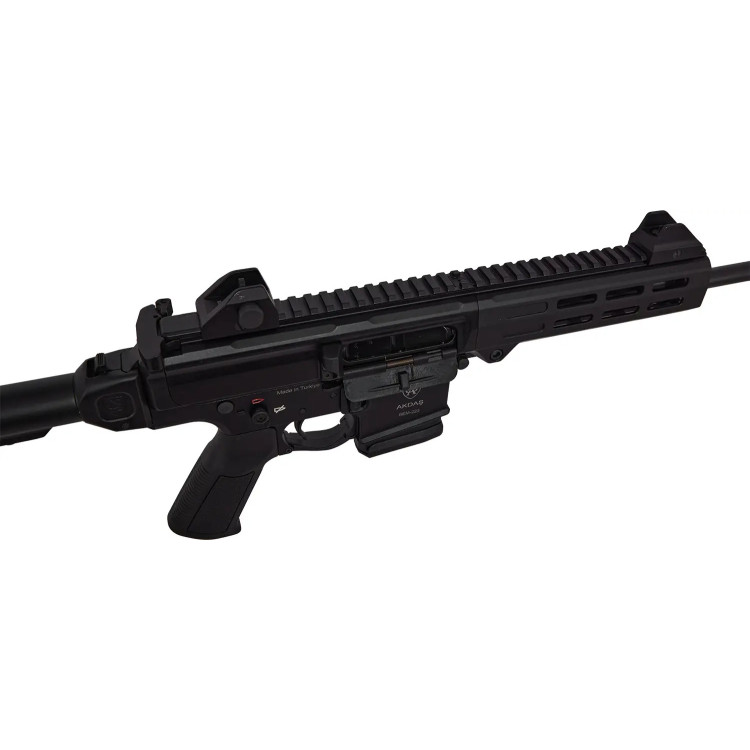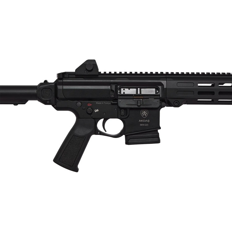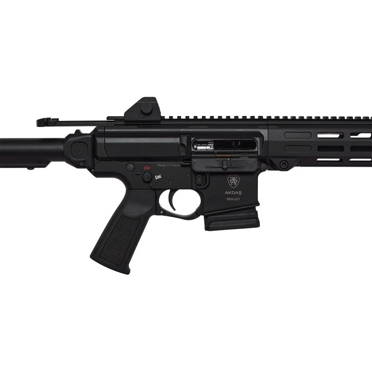 Автоматика в Akdas SEM-223HM TB работает по схеме короткого газового поршня с независимым штоком, что помогает снизить загрязнение механизма продуктами горения. Поворотный затвор поддерживает стабильное запирание канала ствола и равномерное извлечение гильзы. Верхняя планка Пикатинни и цевье, оснащённое интерфейсом M-LOK, предоставляют множество вариантов для монтажа оптики, фонарей или лазерных приспособлений. Верхний и нижний ресивер из алюминиевого сплава 7075 T6 характеризуются повышенной устойчивостью к ударам и коррозии. Двусторонний переключатель огня отвечает за удобство эксплуатации как правшей, так и левшей. Приклад и пистолетная рукоятка часто дополняются эргономичными модулями, что улучшает удержание при интенсивном темпе огня.