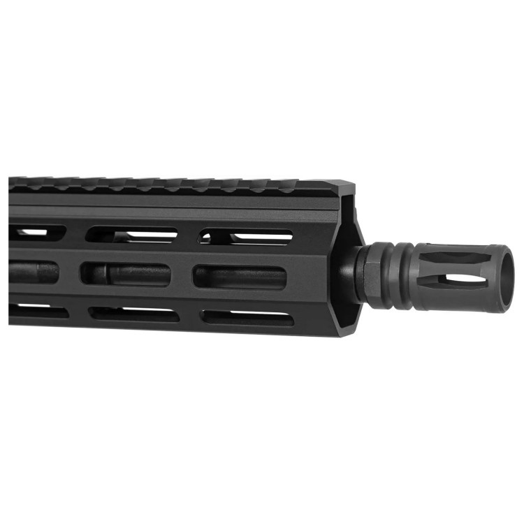 Аппер выполнен методом ковки из алюминиевого сплава 7075-T6. Этот сплав отличается малым весом и высокой механической прочностью, поэтому широко применяется в конструкции современных карабинов. На верхнем ресивере предусмотрена планка Picatinny для установки оптических и коллиматорных прицелов. Консольное алюминиевое цевье оснащено интерфейсом M-LOK, который позволяет закреплять аксессуары напрямую и без лишних переходников. Труба буфера отдачи соответствует стандарту Mil-Spec. В оснащение также входят рукоятка B5 Systems и магазин Magpul PMAG. На дульном срезе установлен стандартный пламегаситель, который при необходимости можно заменить другим дульным устройством.