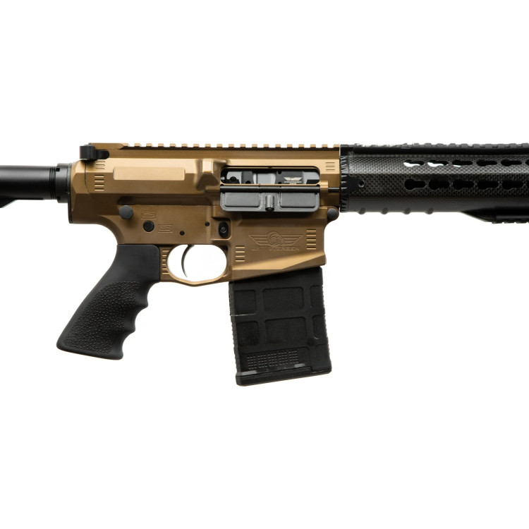 Нижний и верхний ресиверы изготовлены из высокопрочного алюминия 7075-Т6 методом обработки цельных заготовок. Этот материал обеспечивает отличную соотношение прочности и веса, гарантируя надежность и долгий срок службы.