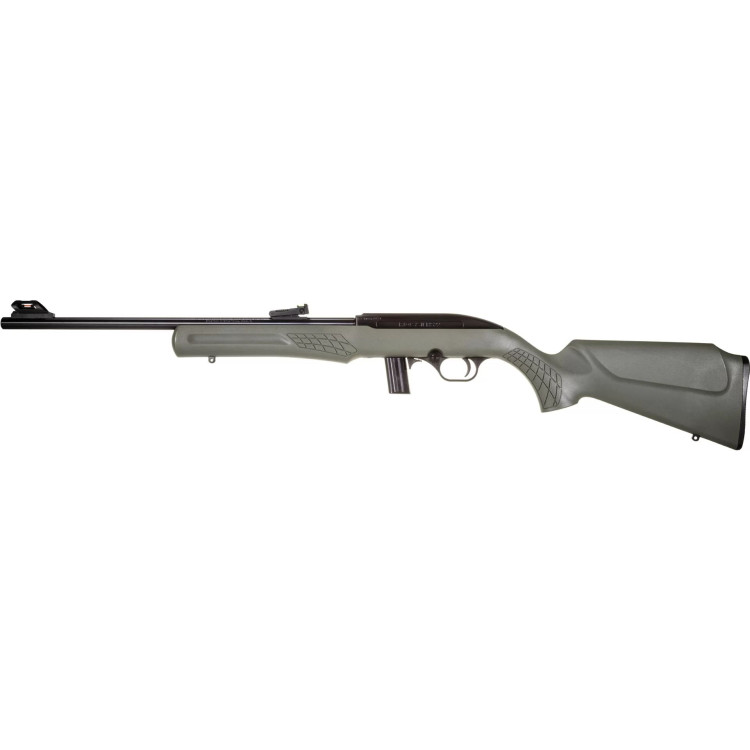 Карабин Rossi RS 22LR BK/OD зеленый — полуавтоматическая винтовка калибра .22 LR с магазином емкостью 10 патронов. Оружие оснащено стволом длиной 45,72 см, выполненным из легированной стали с матовым черным покрытием. Нарезка ствола — 1:16" с 8 нарезами. Ложа изготовлена из прочного и эргономичного полимера цвета Olive Drab Green для надежного хвата и комфорта при стрельбе. Рамка выполнена из алюминиевого сплава с матовым черным покрытием, что придает конструкции прочность и долговечность. Оружие имеет небольшой вес и хорошую балансировку. Прицельные приспособления включают волоконно-оптическую мушку и полностью регулируемый волоконно-оптический целик для точного наведения на цель. Предохранитель кнопочного типа (Cross-Bolt Safety) повышает безопасность обращения с оружием. Карабин подходит для спортивной стрельбы и охоты на мелкую дичь.