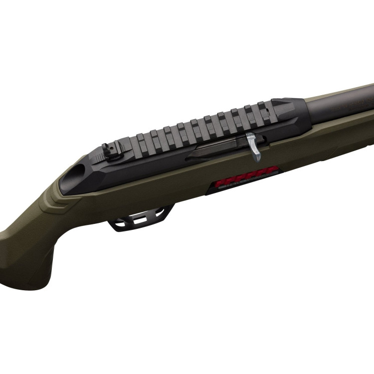 Winchester Wildcat SR OD Green — самозарядный карабин калибра .22LR, отличающийся легкой и прочной конструкцией. Вес модели всего 1,81 кг благодаря применению композитных материалов, что делает его удобным для длительного использования в полевых условиях. Винтовка оснащена стволом длиной 42 см с резьбой для установки глушителя, резьба защищена специальным колпачком. Это решение позволяет обеспечить бесшумность стрельбы при необходимости. Сам глушитель в комплект не входит.