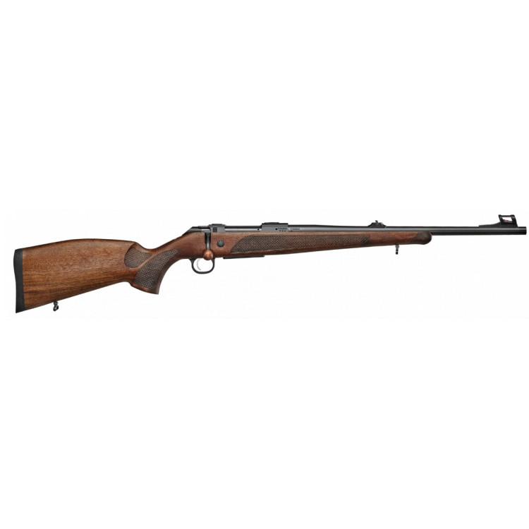 Карабин нарезной CZ600 LUX 223 REM, 5round — новая модель охотничьей винтовки в классическом дизайне от оружейного бренда из Чехии Česká zbrojovka, предназначенная для стрельбы патронами с центральным воспламенением. Ложа выполнена в традиционном дизайне, материалом изготовления является отборный орех. На ложе, как и на рукоятке выполнены насечки, благодаря которым обеспечивается удобное, надежное удержание даже в самых неблагоприятных погодных условиях. Рукоятка затвора также выполнена с использованием качественного ореха. Карабин CZ600 LUX имеет вариации для 5 наиболее востребованных калибров, которые используются на охоте, от 223 Rem до 300 Win Mag. Для производства ствола использовался метод холодной ковки, он выполнен с резьбой M15x1, комплектуется защитой к резьбе. В качестве открытых прицельных приспособлений присутствуют оптоволоконные мушка и целик. Ствольная коробка произведена из высокопрочной азотированной стали, так что длительный срок службы и надежность обеспечены. Плюс на ней имеются основания и кольца крепления типа Remington 700. Благодаря этому стрелок имеет возможность выполнить установку оптического прицела. Эргономичный приклад оборудован затыльником, благодаря которому снижается негативное воздействие отдачи на стрелка, таким образом можно вести более быструю и точную стрельбу. Карабин оборудован магазином емкостью 5 боеприпасов, при этом общий вес карабина составляет 3,2 кг — неплохой показатель для оружия такого типа, позволяет с удобством использовать его в различных видах охоты. Стрелок также имеет возможность отрегулировать усилие натяжения на спусковой крючок в диапазоне от 0,61 до 1,32 кг. В целом же CZ600 LUX удачно сочетает в себе отличные стрелковые характеристики, хорошее качество сборки и при этом приемлемую стоимость.