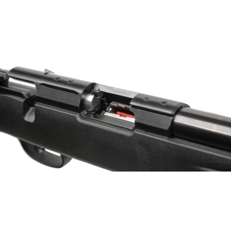 Затворная рукоятка перемещается под углом 60°, чего более чем достаточно для эффективной работы с оптическим прицелом. При этом ствольная коробка оснащена фиксатором затвора, позволяющим оперативно выполнить демонтаж затвора без использования спускового колючка.