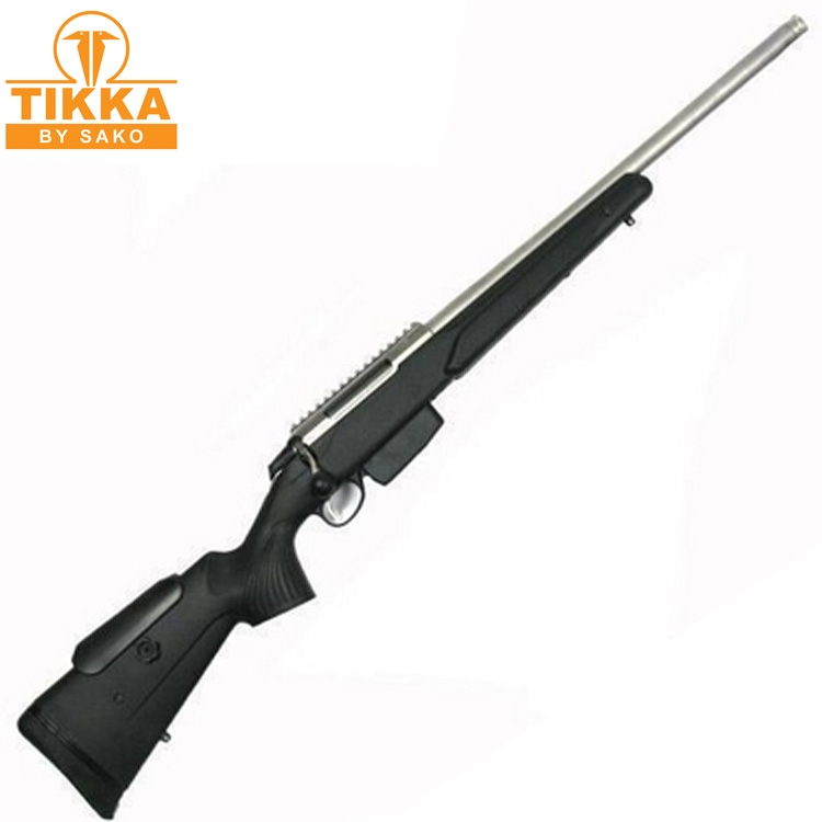 Tikka T3 Super Varmint Stainless 308Wi довольно качественный нарезной карабин, который станет правильной покупкой. Так как для изготовления затворной коробки использовался крайне качественный сплав, ложа крайне удобная в эксплуатации, на прикладе присутствует затыльник, который эффективно нейтрализует воздействие подброса при выстреле. Ружье способно без сбоев демонстрировать свои качества в наиболее тяжелых условиях. Продольно-скользящий затвор дает возможность демонстрировать не только точную, но и весьма быструю стрельбу. Присутствует направляющая Пикатинни для установки аксессуаров. На стволе нарезана резьба M18x1. Благодаря этому пользователь может выполнять монтаж пламегасителя, дульного тормоза компенсатора, глушителя. Шаг нарезов 1:10, подобный твист великолепно стабилизирует пули массой до 55-62 гран. Одновременно с этим и пулю весом до 69 гран данный твист вполне нормально сможет "раскрутить". Длина ствола составляет 51 см. Соответственно, гарантируется хорошая скорость оперативного наведения мушки на цель и результативного выстрела навскидку. Особенно такая длина ствола востребована для охоты в сложно проходимой местности. Карабин оборудован качественным съемным коробчатым магазином. Поэтому стрелок может очень оперативно выполнять перезарядку карабина, демонстрируя быстрое ведение огня. У карабина продольно-скользящий затвор, поэтому карабин способен стрелять мощными патронами, которые выдерживают высокое давление. Продольно-скользящий затвор обеспечивает также надежность и точную стрельбу на дальних дистанциях. На прикладе присутствует затыльник, он в известной степени компенсирует отдачу, которая возникает во время ведения огня. Вследствие чего улучшается кучность и точность стрельбы.