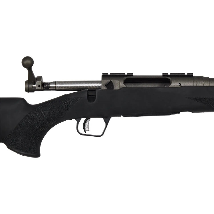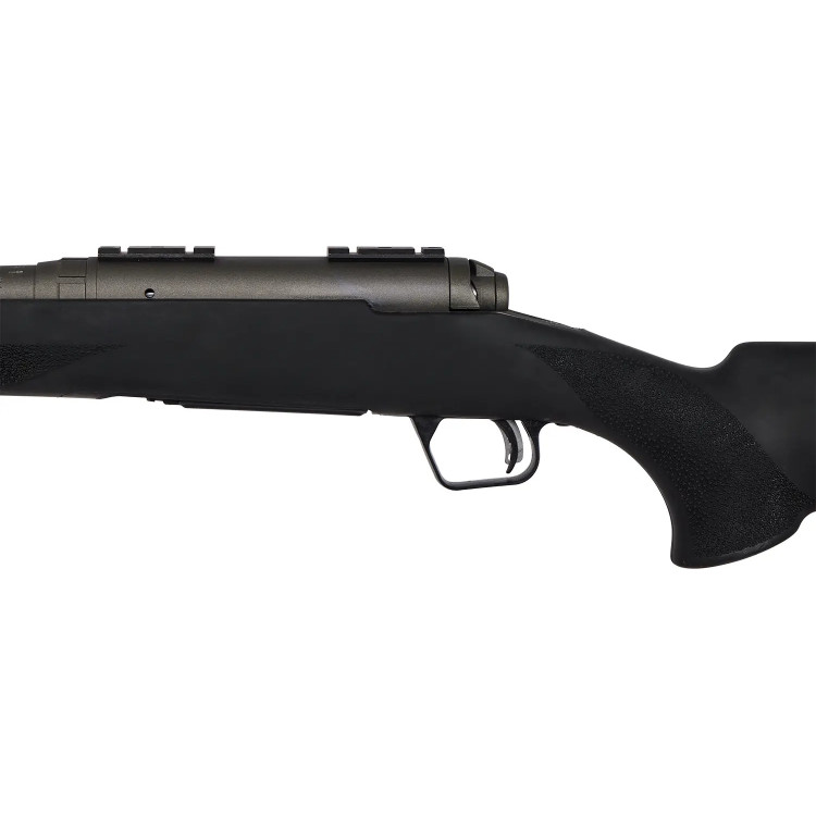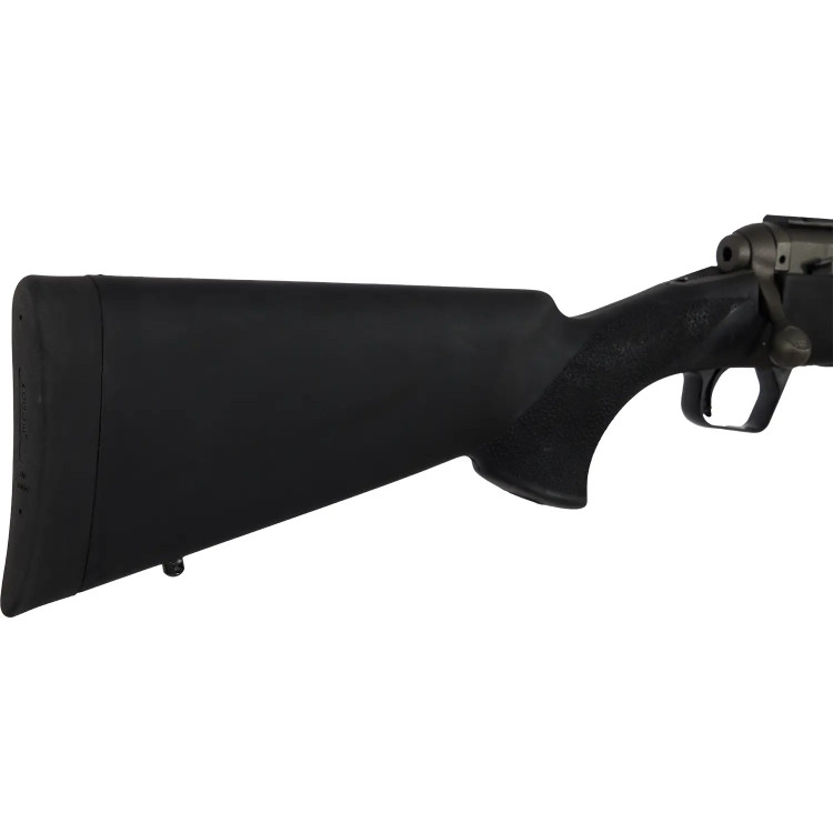 Система спуска AccuTrigger с регулируемым усилием в диапазоне 1,1–2,7 кг отличается высокой точностью работы и адаптивностью к требованиям стрелка. Ложа Hogue Overmolded, выполненная в черном цвете, демонстрирует качественную текстуру и улучшенный захват, способствуя стабильности управления оружием в динамичных ситуациях. Наличие двух баз под антабки для ружейного ремня позволяет удобно расположить элементы крепления.