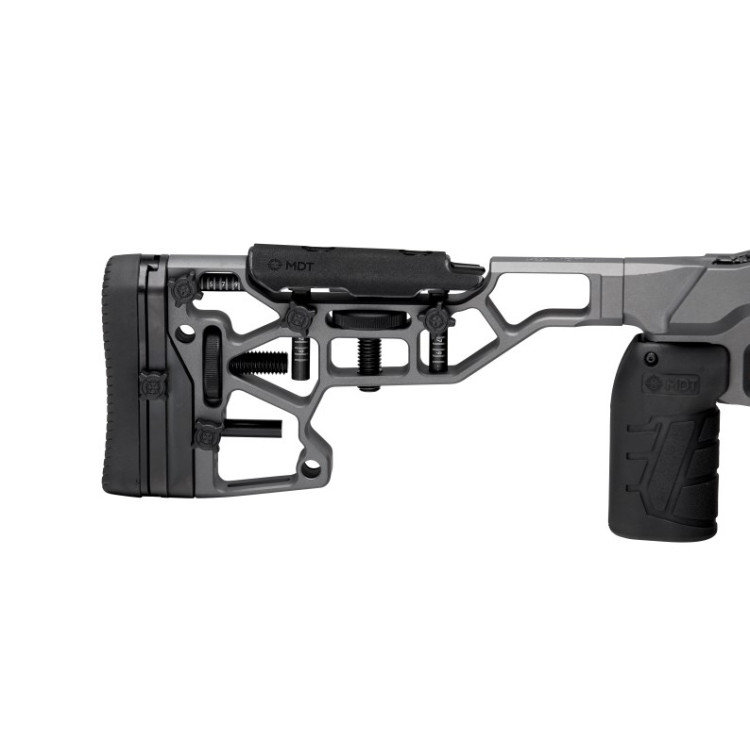 Шасси MDT, изготовленное из цельной алюминиевой заготовки, что обеспечивает прочность и надежность, которые необходимы для точной стрельбы. Кроме того, шасси имеет регулируемую длину и высоту, что позволяет стрелку настроить его на свои индивидуальные потребности. То есть стрелок будет иметь комфортную позицию при стрельбе.