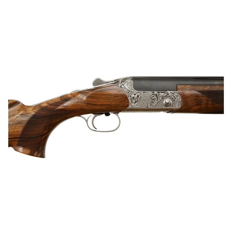 Спусковой агрегат имеет малый ход и чёткий отклик, усилие на спуск — 1650 гр; реакция спуска остаётся предсказуемой во временном интервале после подготовки к выстрелу. Эжекторная система EBS реализована так, что пружины взводятся только при открытии замка, выброс стреляных гильз выполняется последовательно без задержек. Приклад изготовлен из ореховой породы в английской технике обработки; версия Fusion дополнена мраморной текстурой древесины, придающей визуальную уникальность каждой единице.