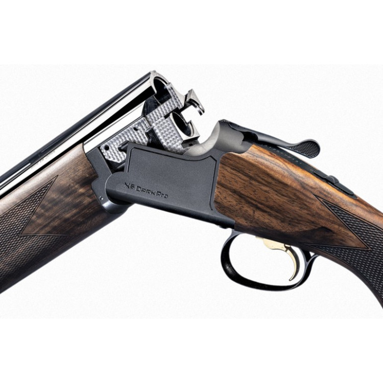 Browning Ultra XS Dark Pro 12M ADJ, 76 INV+ Ti — гладкоствольное ружье 12 калибра, ориентированное на спортивную стрельбу и точную подгонку под конкретного стрелка. Модель выполнена на базе ствольной коробки с матовым черным покрытием, которое не создает лишних бликов и остается практичным при регулярной эксплуатации. На цевье Grade 4 размещена фирменная подпись John Moses Browning.
