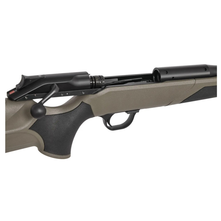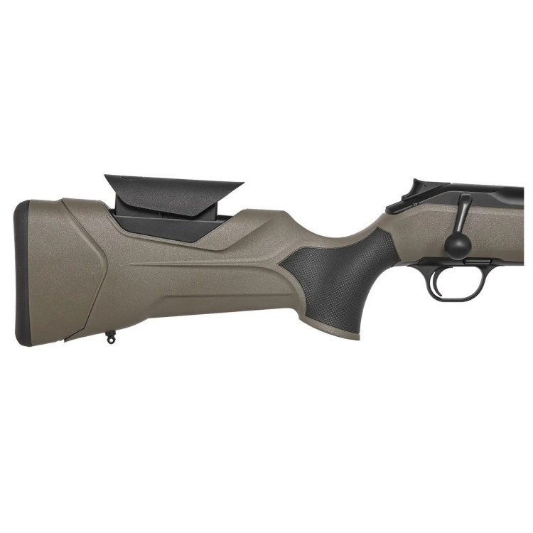 Модель совместима с системой iC. При установке оптики Blaser iC подсветка прицельной марки может включаться автоматически при взведении карабина, что ускоряет подготовку к выстрелу и делает работу с оружием более интуитивной. Калибр 30-06 по праву считается универсальным охотничьим вариантом: он подходит для широкого круга задач, сочетая хорошую мощность, уверенную баллистику и доступность боеприпасов. Ствол длиной 52 см сохраняет удачный баланс между маневренностью и эффективностью, поэтому карабин удобен и на номере, и на ходовой охоте. Дульная резьба М15x1 позволяет устанавливать совместимые устройства. При массе около 3,1 кг модель ощущается надежной, но не чрезмерно тяжелой для длительного ношения.