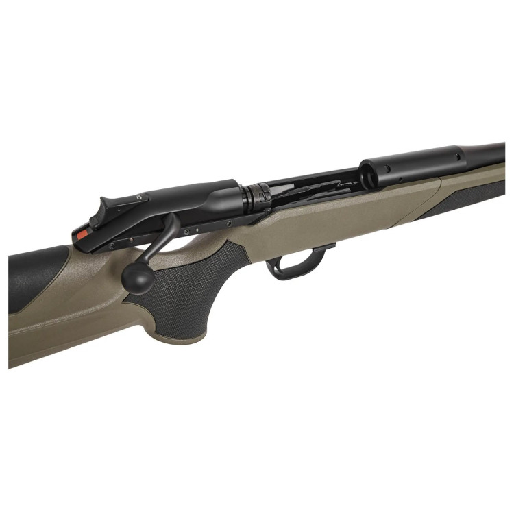 Ствол длиной 58 см защищён покрытием DLC A+. DLC, или Diamond Like Carbon, — это сверхтвёрдое углеродное покрытие, которое снижает износ, повышает стойкость к царапинам и помогает лучше противостоять коррозии. Иначе говоря, металл дольше сохраняет рабочее состояние и аккуратный внешний вид даже при активном использовании в поле. Карабин совместим с системой iC. Если используется оптика Blaser iC, подсветка прицельной марки может включаться автоматически при взведении карабина. Это удобно на охоте в сумерках и экономит драгоценные секунды, когда зверь появляется неожиданно.