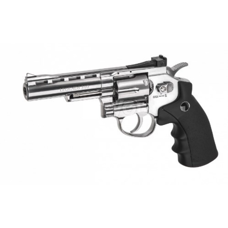 Пневматический револьвер Umarex Legends S40 4" кал.4,5мм отличается в первую очередь внешним видом, поскольку здесь выполнено качественное блестящее никелирование. Пистолет также отличается хорошим уровнем надежности и прочности, так как выполнен из металла. Umarex Legends — достаточно аутентичная вещь, к примеру, пули из свинца типа Диаболо вставляются в металлические картриджи-патроны в количестве 6 штук. Хорошую точность стрельбы обеспечивает нарезной ствол. Пользователь имеет возможность отрегулировать целик под свои особенности стрельбы. В качестве предохранителя здесь используются фиксатор барабана, поставить на предохранитель можно путем нажатия фиксатора в противоположную сторону. Также можно достаточно быстро заряжать пистолет благодаря спид лоудеру, присутствующему в комплекте. А если хочется еще повысить точность стрельбы, стрелок имеет возможность демонтировать целик, а вместо него выполнить установку сьемной планкой Пикатинни. В итоге можно оснастить оружие например коллимоторным прицелом и поражать цель еще точнее. Вес пистолета составляет 880 грамм, при этом общая длина 24,6 см, а ствол имеет длину 8,6 см. В качестве патронов используются пули из свинца, их начальная скорость составляет 120 м/с — неплохой показатель для различных типов стрельбы. Этот пистолет может использоваться и для развлекательной стрельбы, и для самообороны. Производитель Umarex уже много лет выпускает на рынок качественное травматическое, пневматическое оружие, за эти годы наработан большой опыт и разработаны соответствующие технологии. Соответственно стрелок, приобретая револьвер Umarex Legends S40, получает отличное сочетание качества, технологичности, надежности, длительного срока службы, точной стрельбы и при этом достаточно небольшой стоимости.