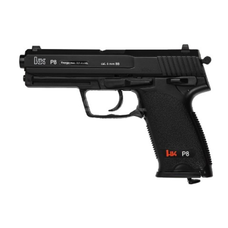 Пневматический страйкбольный пистолет Umarex Heckler & Koch P8 A1 кал. 6мм. CO2 Blowback представляет из себя практически идентичную реплику модификации Heckler & Koch P8 A1, предназначенную для использования специалистами военных и правоохранительных подразделений. Затвор оборудован функцией Blowback, сам затвор выполнен из прочного металла, благодаря чему обеспечивается высокий уровень надежности и безопасности. Пистолет оборудован кнопкой сброса магазина 2-стороннего типа. Ударно-спусковой механизм двойного действия. Также имеется ручной предохранитель. Емкость магазина — 17 боеприпасов, общий вес оружия составляет 575 грамм. Для стрельбы используются специальные баллоны CO2. Такой пистолет будет хорошим выбором для использования стрельбы в страйкболе для развлекательной стрельбы.