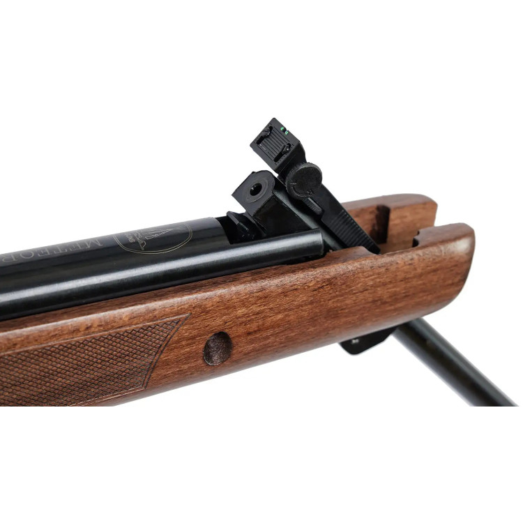 Деревянное ложе, выполненное из качественного бука, не только придает винтовке элегантный внешний вид, но и гарантирует надежный хват и комфорт при стрельбе благодаря насечкам, которые предотвращают скольжение влажных рук. Ствол Meteor Evo изготовлен с использованием технологии холодной ковки, что придает ему повышенную прочность и стойкость к износу.
