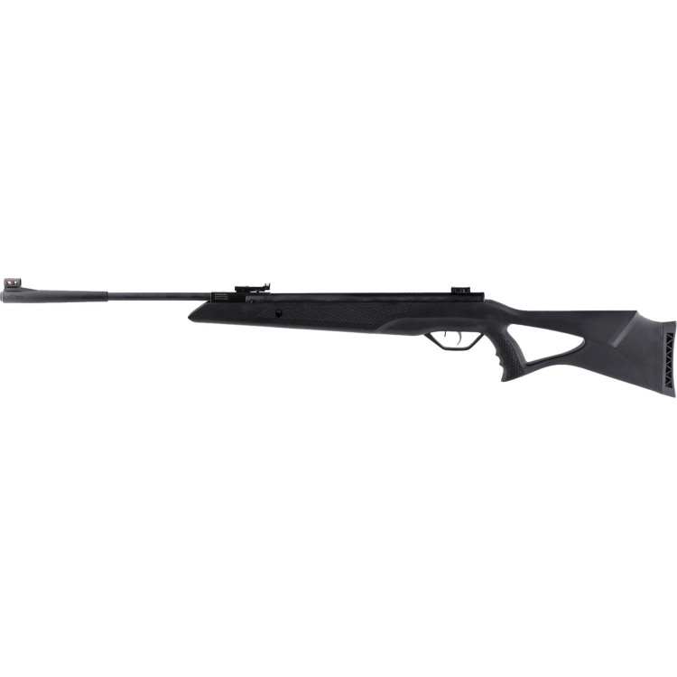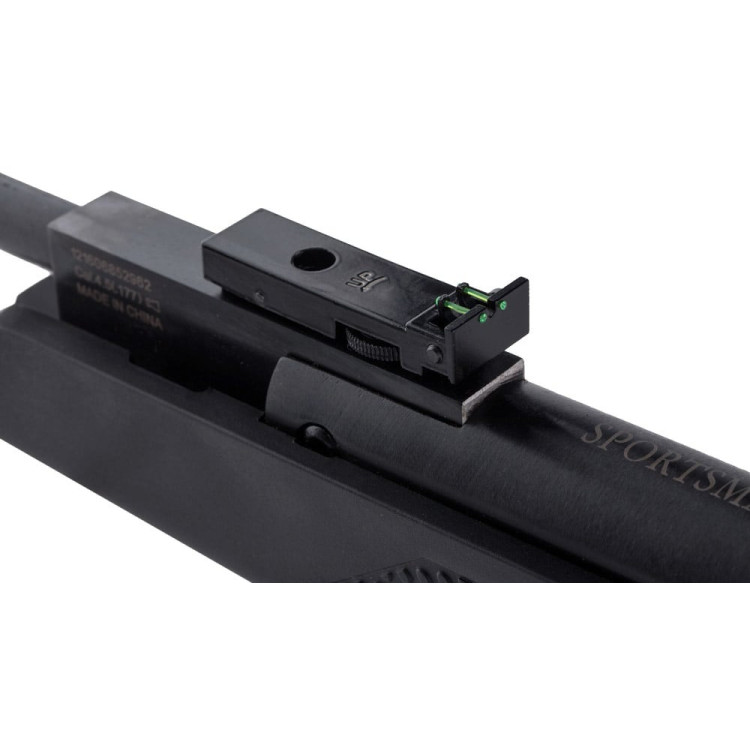 Синтетический черный приклад с пистолетной рукояткой придает винтовке современный и эргономичный вид. Открытые прицельные приспособления выполнены из металла и оснащены оптоволоконными вставками, что облегчает прицеливание даже при плохом освещении. Длина винтовки 115 см, что делает ее удобной для транспортировки и использования в различных условиях. Вес модели — 3,12 кг.