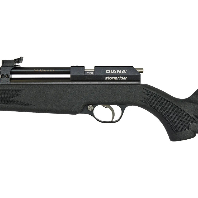 Винтовка оснащена интегрированным саундмодератором, что делает стрельбу тише и более дискретной. Stormrider Black PCP поставляется с открытыми прицельными приспособлениями, включающими целик и мушку. Это дает возможность точной настройки прицела и обеспечивает высокую точность стрельбы. Дополнительная 11-миллиметровая планка «ласточкин хвост» на ствольной коробке позволяет установить различные оптические прицелы и аксессуары. Модель Diana Stormrider Black PCP оснащена 7-ми зарядным магазином.