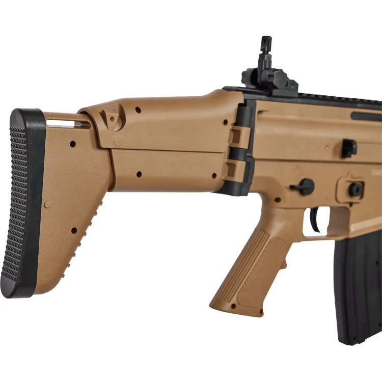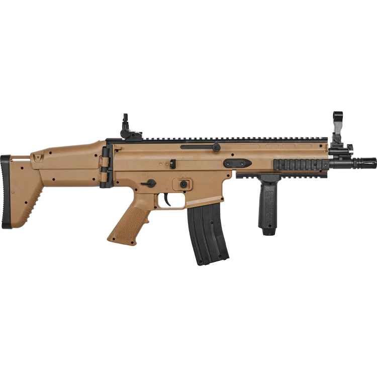 Винтовка страйкбольная Cybergun SA FN SCAR-L Spring кал. 6 мм ВВ. Tan сочетает в себе легкость и прочность благодаря использованию ABS-пластика в конструкции. Эта модель имеет официальные маркировки FN Herstal, что придает ей реалистичный вид и особый статус среди аналогов. Множественные направляющие Пикатинни позволяют устанавливать различные аксессуары, такие как фонари, прицелы и боксы PEQ, расширяя функциональность и настраиваемость винтовки под индивидуальные предпочтения игрока.