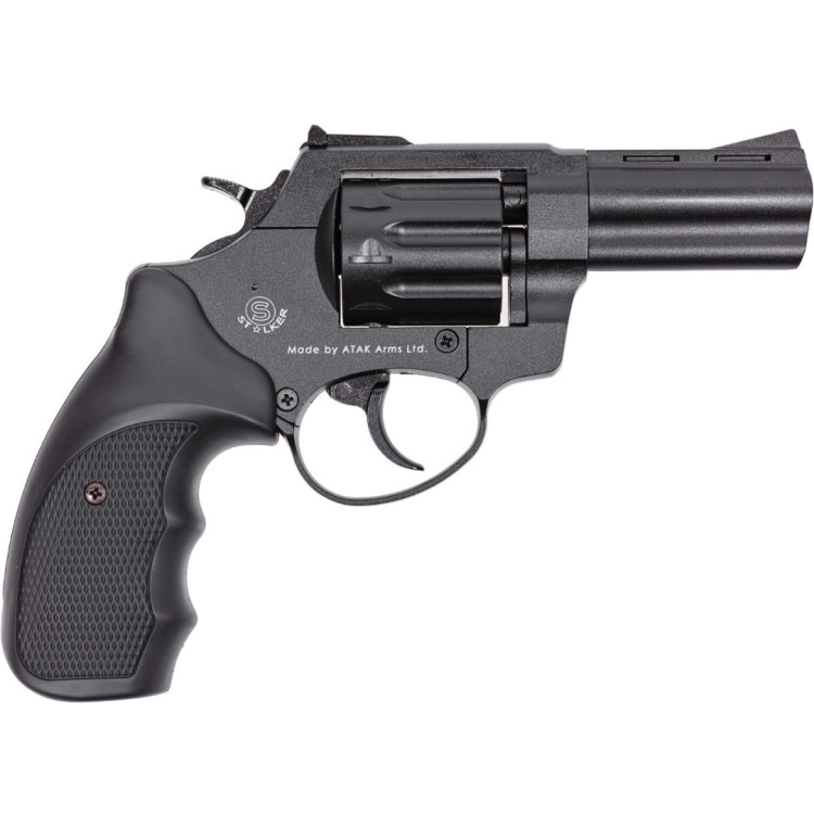 Рукоятка оружия изготовлена из высококачественного пластика, обеспечивая надежное и комфортное сцепление при стрельбе. Рамка выполнена в стильном черном цвете, придающем ему элегантный и современный вид. Револьвер STALKER 3" оборудован гладким стволом длиной 7,6 см. Гладкий ствол делает его легким в уходе и обслуживании, что подходит для новичков и опытных стрелков. Прочный и надежный барабан из стали обеспечивает надежную поддержку и вращение патронов внутри оружия. STALKER 3" может вмещать в свой барабан 9 патронов, что дает возможность стрельбы без необходимости частой перезарядки. Это делает его отличным выбором для развлекательных и тренировочных стрельб. Корпус револьвера также выполнен из металла, гарантируя оружию долгий срок службы и высокую степень надежности.