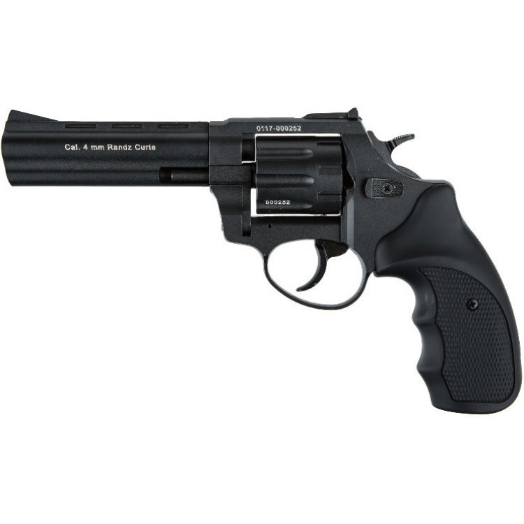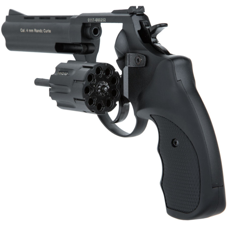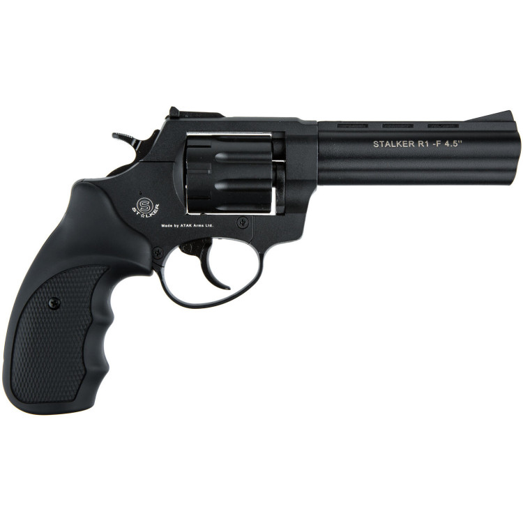 Оснащен длинным стальным стволом длиной 11,4 см. Это дает ему преимущество в точности стрельбы, а также позволяет легче контролировать оружие во время выстрелов. Длинный ствол также улучшает баллистические характеристики револьвера, делая его идеальным для тренировок и практики меткости. STALKER S 4.5" обладает прочным корпусом, выполненным из металла, что придает оружию долговечность и надежность. Барабан, в котором располагаются патроны Флобера, изготовлен из легкосплавного металла — силумина.
