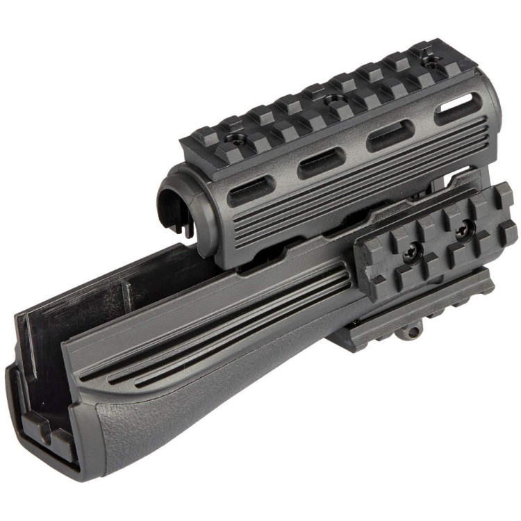 Одной из важных особенностей являются четыре встроенные планки Weaver/Picatinny, которые предоставляют оператору широкие возможности по установке дополнительного снаряжения, такого как тактические прицелы, фонари, лазерные указатели и другие аксессуары. Конструкция цевья включает в себя одну планку длиной 4 дюйма и три планки длиной по 2 дюйма, предоставляя пользователю оптимальные варианты размещения различных аксессуаров в соответствии с индивидуальными предпочтениями и в различных сочетаниях.