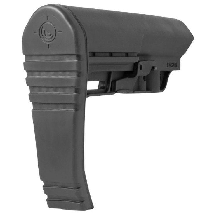 Приклад совместим с винтовками серии M4, монтируется на стандартные трубчатые направляющие Mil Spec диаметром 3.6 см. Замена штатного складного механизма выполняется без модификации базовой платформы. Угловая форма тыльной части с резиновым амортизатором снижает вибрацию и фиксирует положение оружия при быстром прицеливании.