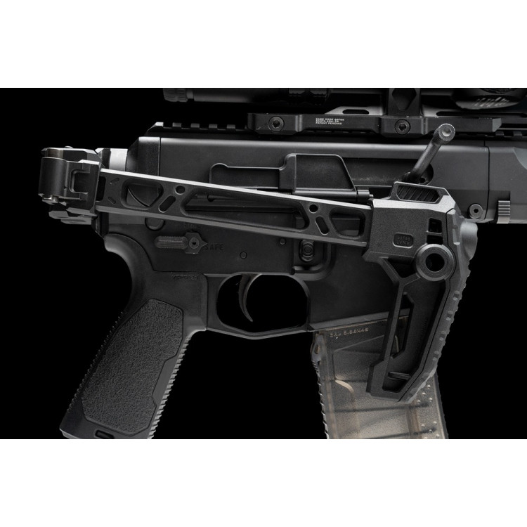 Strike Dual Folding Adapter совместим с большинством оружия с направляющей Picatinny 1913, заменяя традиционные резьбовые трубки для буфера. При установке пользователи получают уникальный модульный компонент, который отличается широкими возможностями кастомизации и совместимости.