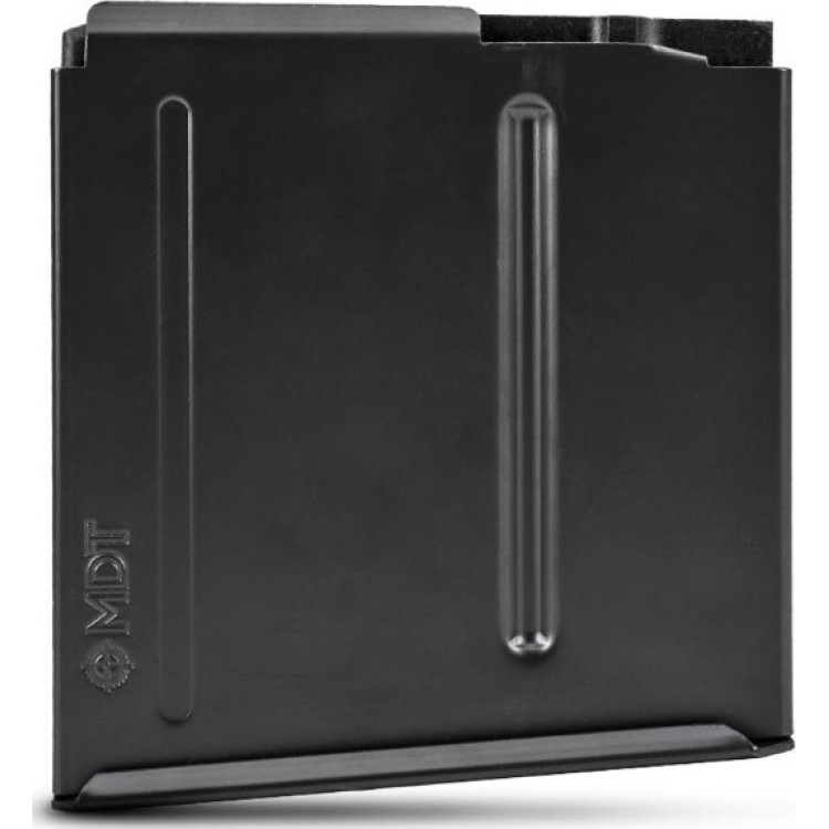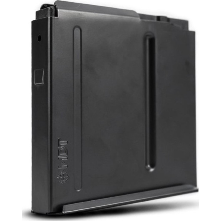 Магазин 5-ти зарядный MDT AICS 338LM от известного оружейного канадского производителя. Все производство располагается в Северной Америке, благодаря чему обеспечивается высокое качество материалов и сборки, а соответственно длительный срок, надежность и безопасность. Материалом производства магазина является высококачественная сталь, при этом выполнено защитное покрытие Cerakote Elite, благодаря которому минимизирована вероятность возникновения коррозии, а также магазин защищен от возникновения небольших внешних повреждений. Магазин однорядный, подобная структура характеризуется повышенной надежностью и бесперебойностью подачи боеприпасов. Магазин произведен в полном соответствии со стандартом AICS. Предназначен для использования совместно с боеприпасами 338 Lapua Mag.