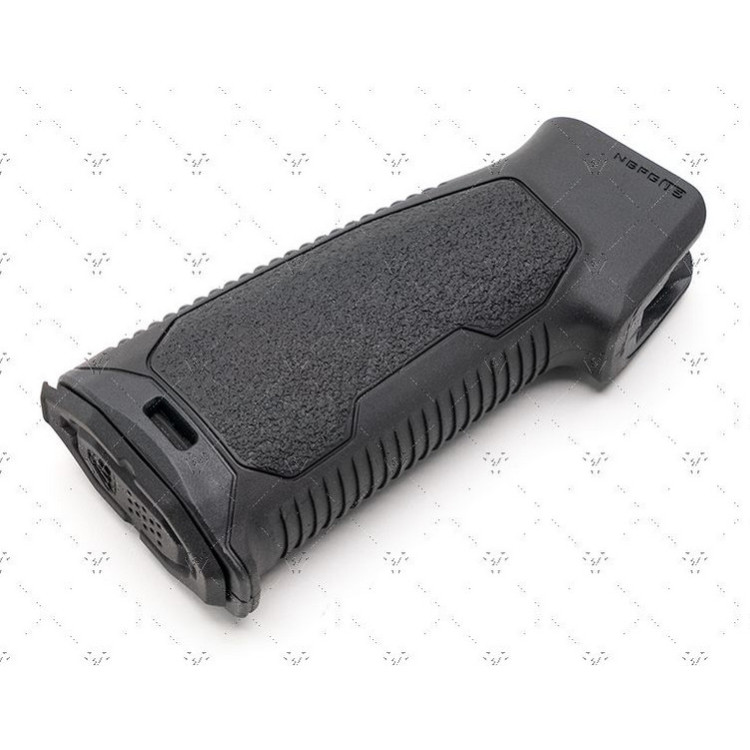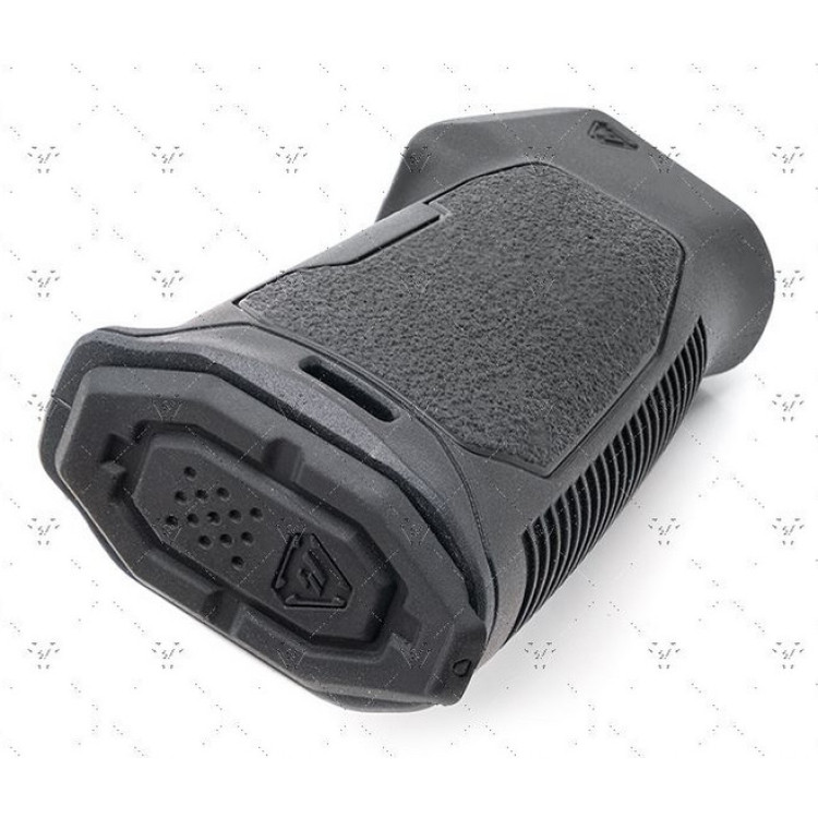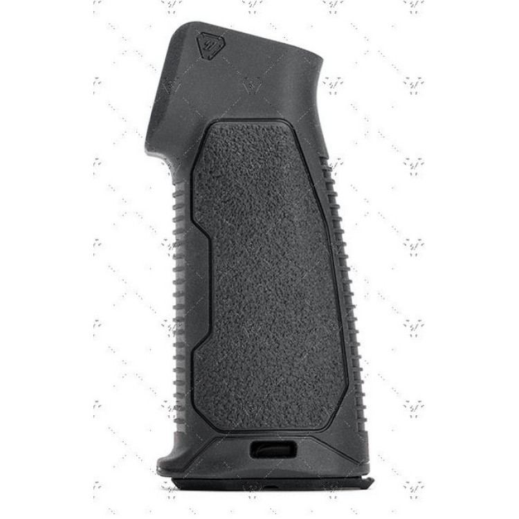Рукоятка оснащена прорезиненной текстурой, обеспечивающей надежный хват даже в условиях влажности или при использовании перчаток. Обтекаемый дизайн и сужение в области перепонки руки учитывают естественные контуры руки, обеспечивая идеальное сцепление и улучшенный контроль над оружием.