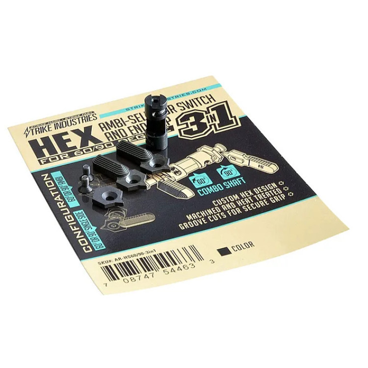 Регулируемый предохранитель шестигранный селекторный переключатель 60/90 градусов 3 в 1 Strike Industries предлагает две опции угла поворота: 60 и 90 градусов. С такой гибкостью выбора режимов оператор получает возможность настраивать оружие в соответствии с персональными предпочтениями и сценариями использования.