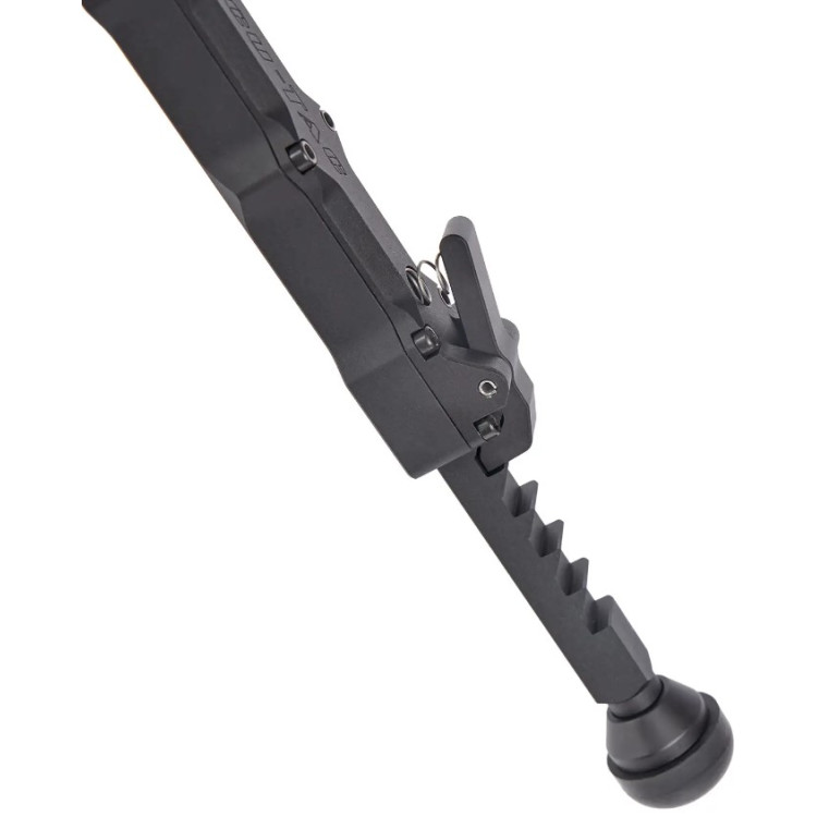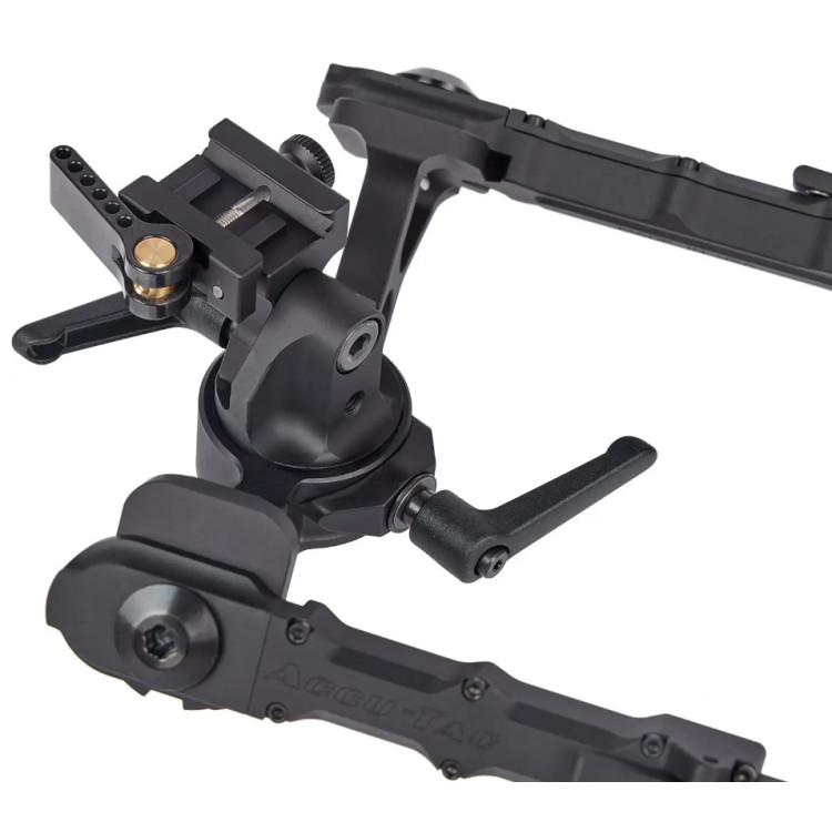 Accu-Tac FC-4 G2 оснащены шарнирным механизмом "качалка", который позволяет регулировать высоту и наклон сошек. Ножки имеют подпружиненный механизм с четырьмя уровнями регулировки: транспортировочное положение для удобства переноски, 90° для установки на ровной поверхности и два угла под углом 45° вперед и назад. Ножки нужно регулировать вручную, обеспечивая легкость в использовании. Складывание происходит одним нажатием кнопки, позволяя быстро и удобно переключаться между различными положениями. Резиновые наконечники на ножках обеспечивают отличное сцепление с поверхностью и предотвращают скольжение.