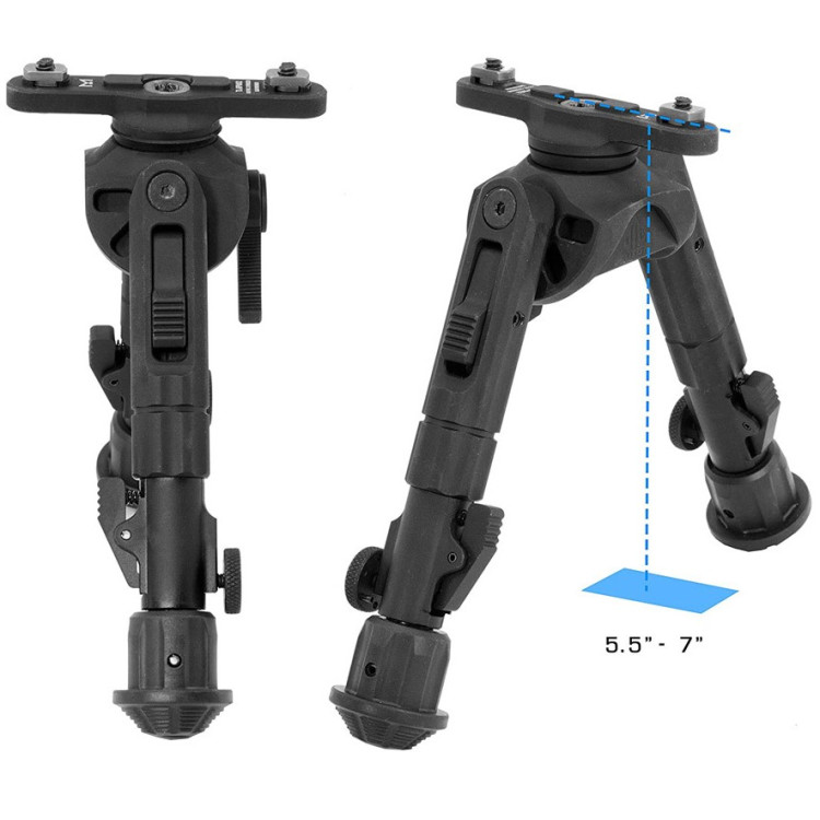 Интегрированный механизм позволяет осуществлять плавный наклон сошек на 15° вперед, назад, влево и вправо, что увеличивает гибкость стрелковой позиции.