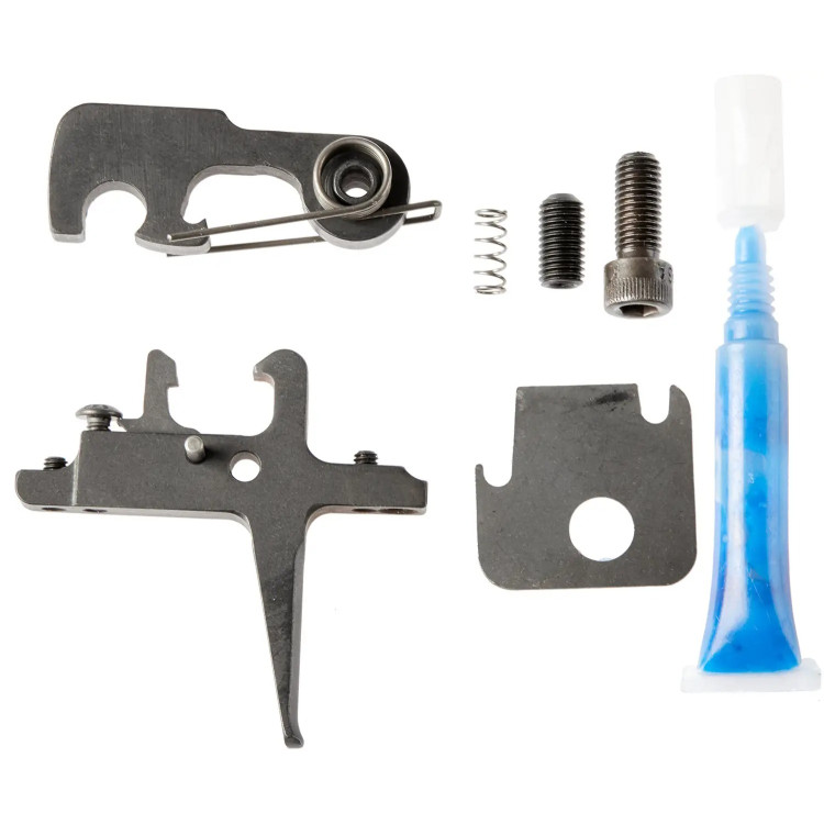 Данный УСМ обладает прямым профилем спускового крючка. В комплекте предусмотрена возможность выбора между стандартным скоростным или утяжеленным курком.