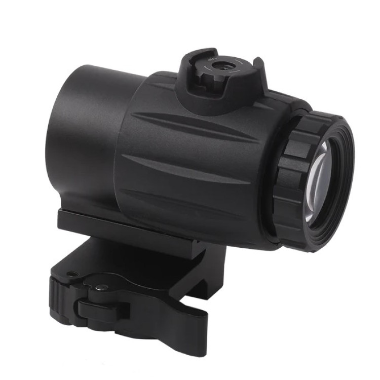 Диапазон рабочих температур варьируется от -40°C до +60°C, что делает увеличитель подходящим для использования в экстремальных климатических условиях. Общая длина 8 см, а вес — 288 гр, что облегчает его использование без значительного увеличения веса оружия.