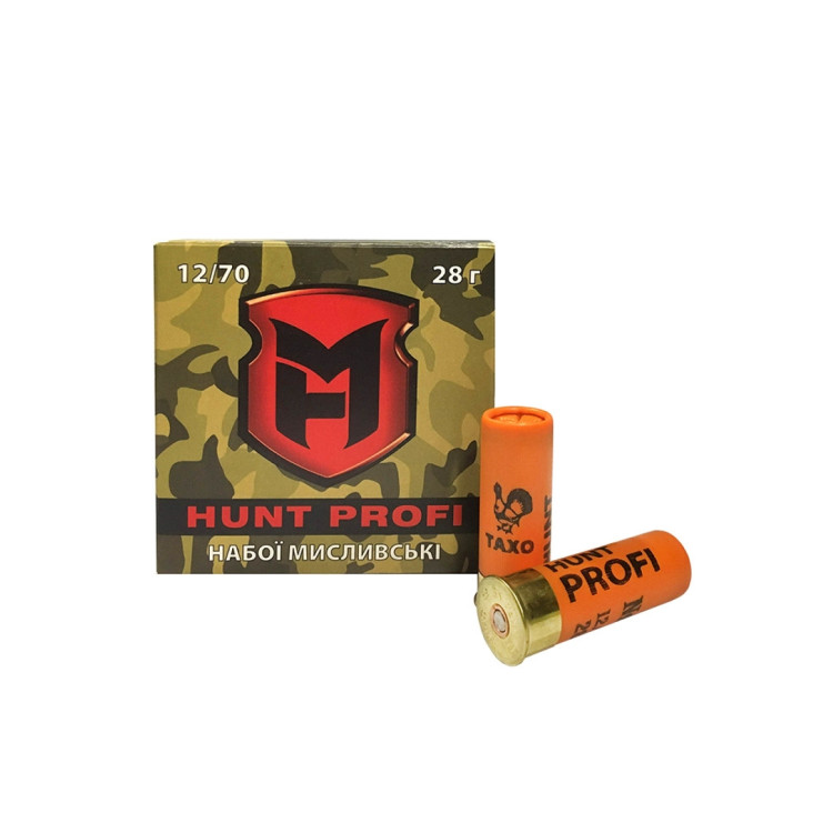 Патрон гладкоствольный Тахо "Hunt profi" калибр 12 №5 представляет собой охотничий патрон, который применяется для охоты на среднюю дичь (вальдшнеп, голубь, куропатка, утка, тетерев). Патрон имеет мягкую отдачу для стрелка, что позволяет быстро совершать следующий выстрел. Патрон показывает самый высокий результат с гладкоствольным оружием калибра 12/70. У патрона великолепная начальная скорость — 410 м/с, что позволяет добиться увеличения площади поражения цели. Масса навески патрона составляет 28 грамм, номер дроби 5. Патрон гладкоствольный Тахо Hunt profi кал.12 №5 при правильном использовании несомненно сделает стрельбу точной.