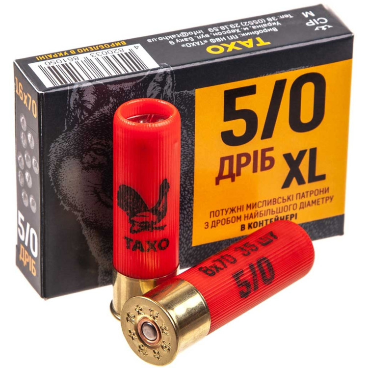 Патрон гладкоствольный Тахо XL калибр 16 №5/0 представляет собой охотничий патрон с дробью увеличенного размера. Диаметр дроби составляет 5,25 мм, масса навески патрона 31 грамм, номер дроби 5. Патрон контейнерный с пластиковым пыжом, что дает возможность предотвратить высыпание дроби из патрона. Патрон дает великолепный результат с гладкоствольным оружием калибра 16. Патрон Тахо XL показывает высокий темп стрельбы, не теряя при этом качество стрельбы. Патроны упакованы в картонную коробку в количестве 25 штук. Патрон гладкоствольный Тахо XL дает стабильные показатели полета дроби.