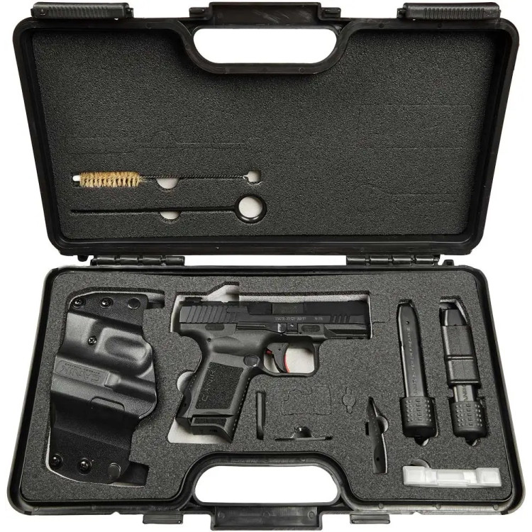 В комплект поставки входят запасной магазин с удлиненной пяткой, а также набор для чистки и устройство для загрузки магазина. Специальная кобура для скрытого ношения (внутрибрючная и наружная) позволяет легко и незаметно носить пистолет в повседневной жизни. Угловатый спусковой крючок улучшает контроль над оружием, что особенно важно в стрессовых ситуациях.
