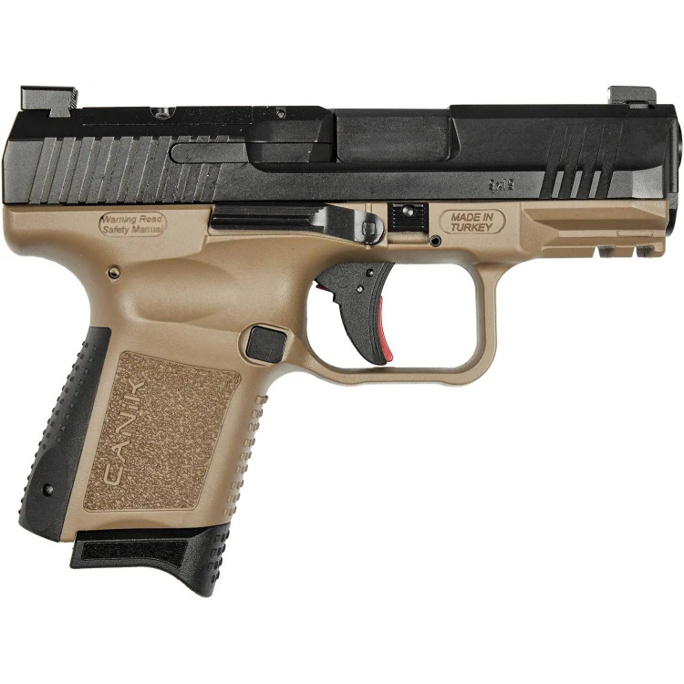 Пистолет Canik TP9 SUB METE калибра 9 мм (9х19) в цвете FDE благодаря своим компактным размерам и продуманному дизайну идеально подходит для скрытого ношения и быстрого извлечения. В его конструкции использован волокнистый полимер, что обеспечивает легкость и прочность, а наличие микроприцельного интерфейса позволяет легко интегрировать различные оптические прицелы.