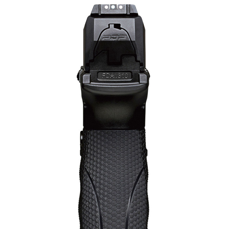 Рамка выполнена из ударопрочного высокотехнологичного полимера, обеспечивая легкий вес оружия и гарантируя долгий срок службы. Пистолет оснащен спусковым крючком с автоматическим предохранителем и радиусом действия в 70 мм. Укомплектован механическими открытыми прицельными приспособлениями с регулируемым целиком. Эргономика прицельных приспособлений обеспечивает идеальное сочетание прицеливания, а также улучшенное взаимодействие с коллиматорными прицелами.
