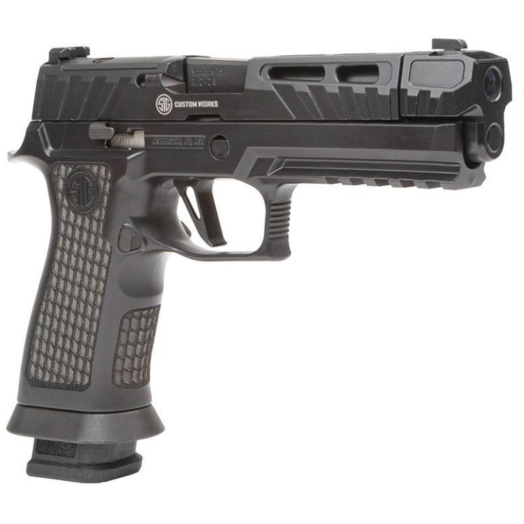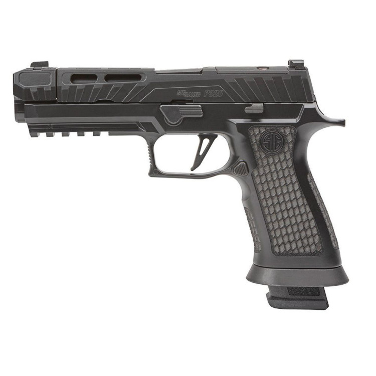 Sig Sauer P320 Spectre Comp Blackout представляет из себя современное обновление популярной модели P320 Spectre. Улучшения коснулись как функциональных возможностей, так и внешнего вида. Эргономичная рукоятка LXG Tungsten XSeries имеет высокопрочное покрытие на основе вольфрама, также обработана Cerakote Elite Series Blackout, плюс имеется специальная штриховка, созданную лазерным способом. Все это в совокупности обеспечивает великолепную эргономику, удобство при удержании и надежность даже в условиях работы в перчатках.