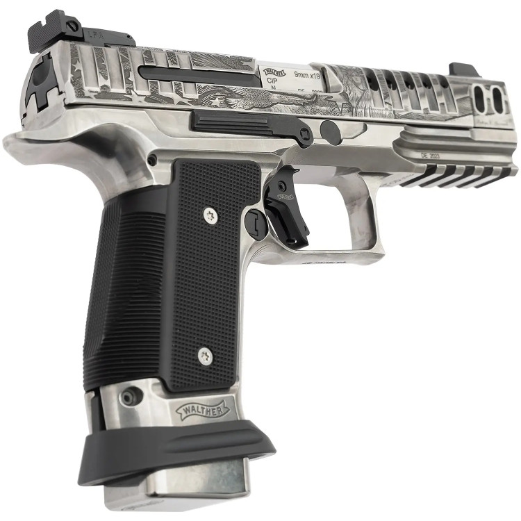 Версия Patriot получила художественную гравировку от итальянской студии Bottega Giovanelli, отражающую мотивы истории США. Ствол, затвор и стальной базис подвергнуты нитридному покрытию по методике Tenifer, что повышает защиту от коррозии и механических повреждений. Алюминиевые накладки на рукоятку создают надежный охват, а спусковой крючок Dynamic Performance рассчитан на нагрузку 2500 гр. Комплектование тремя магазинами облегчает непрерывную стрельбу, а в модификации OR создано посадочное место для коллиматора.