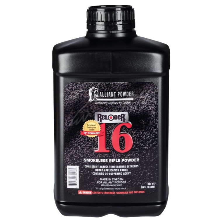 Порох Alliant RL168 Reloder 16 создан для обеспечения идеальной повторяемости выстрелов на дальние расстояния, а для этого от пороха требуется стабильность при экстремальных температурах. Именно эта черта данного пороха соответствует мировому классу — это один из лучших в мире видов пороха по предсказуемости поведения в самых высоких температурах. Используется запатентованная производителем добавка, минимизирующая воздействие меди.