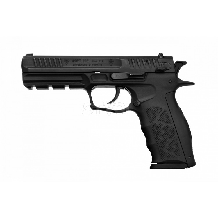 Травматический пистолет «Форт-19Р», предназначенный для самообороны, является улучшенной модернизацией «Форт-14». Главное отличие заключается в использовании более прочной полимерной рамы и удлиненном стволе, благодаря чему достигается значительное уменьшение общего веса пистолета при полном сохранении его боевых характеристик. Обладает отличными эргономическими свойствами, удобно лежит в руке. Также есть возможность снятия ствола. Увеличенное расстояние между целиком и мушкой позволяет добиться более точной стрельбы относительно «Форт-14». Стрелять можно как с предварительно взведенного курка, так и самовзводом