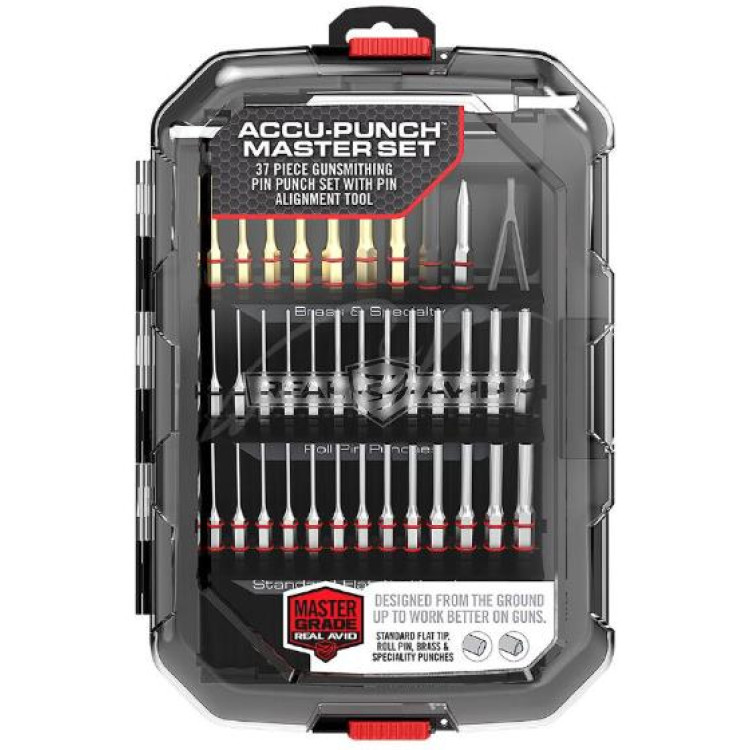 Набір Real Avid з 37 вибивачів призначений для комфортного, швидкого і ефективного вибивання монтажних штифтів. Вибивачі дають можливість виконувати розбирання збройових комплектуючих для подальшого виконання необхідного обслуговування і модернізації. Легкість доступу до всіх інструментів забезпечується завдяки міцному органайзеру, для виробництва якого був використаний спеціальний полімер. Всі вибивачі розташовані в своєму спеціально виділеному місці в органайзері, завдяки чому забезпечується простота і порядок збереження всього, що входить в набір.