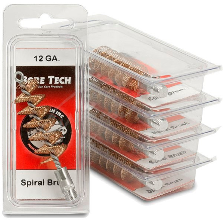 Спиральный ершик Bore Tech для ружей для калибра 12, резьба 5/16-27, материал бронза это высококачественное средство, благодаря ему стрелок имеет возможность обеспечивать чистоту сохранности оружия. Таким образом серьезно повышается период службы стрелкового вооружения, а также грамотно досмотренное оружие будет показывать свои максимальные способности во время эксплуатации. Необходимое дополнение, который применяется совместно с шомполом — насадка ершик, для очистительных работ ствольных поверхностей. Применяется для конкретного калибра. Щетина на ерше как правило делается из жесткого нейлона или бронзы. Заказывая ерш нужно обратить внимание на вид резьбы на шомполе, а также ее шаг.