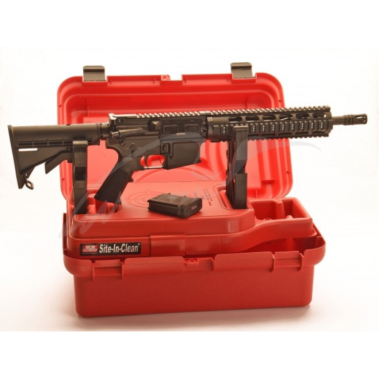 Верстат для чищення MTM Site-in-clean з кейсом є сучасним засобом, завдяки якому стрілок може забезпечувати чистоту безпеки стрілецького озброєння. І тому серйозно підвищується період служби деталей зброї, а також грамотно доглянута зброя зможе демонструвати свої найкращі здібності під час використання. Верстат MTM Site-in-clean виконаний із високоміцного, надійного пластику. Для виготовлення верстата МТМ використовувався високоякісний пластик, призначений для чищення та додаткового догляду за гладкоствольним, а також нарізним озброєнням.