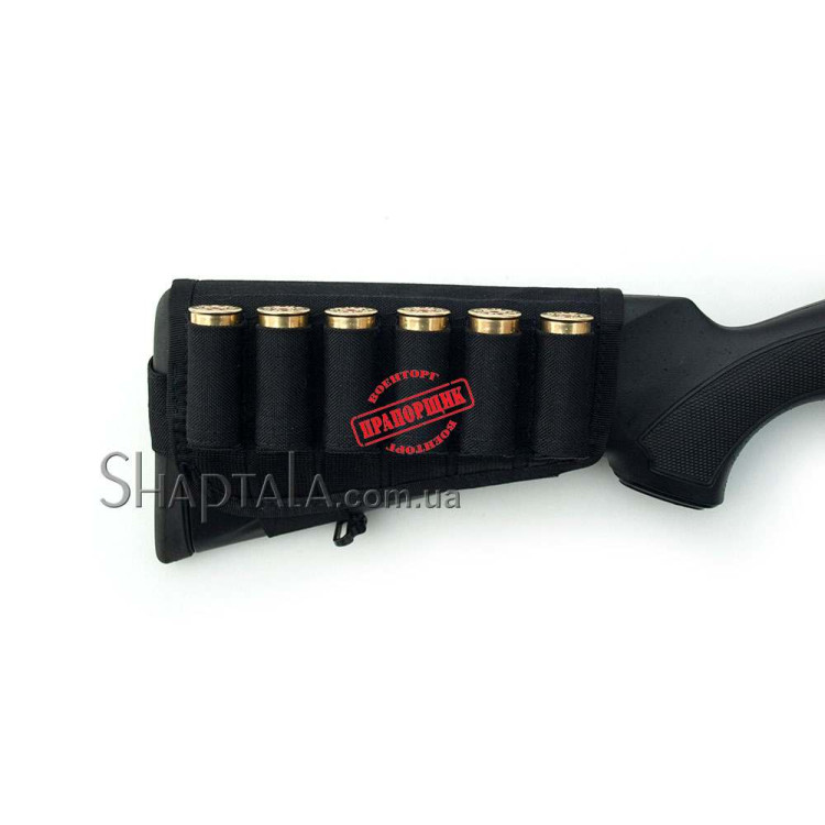 Патронташ з прикладу SH. Модель 2. калібр 12 представляє собою стійкий до зносу виріб від відомої серед знатоків збройної продукції вітчизняної компанії, для виробництва якого було застосовано якісну сировину, через що патронташ на приклад SH (модель 2) буде у використанні тривалий термін. Патронташ виконаний з міцного нейлону, розрахований на 6 патронів, конструкція дозволяє надійно зафіксувати його на прикладі. У результаті патронташ вкрай ефективно виконує запропоновані функції. Разом з цим, рекомендуємо взяти до уваги дуже цікаве співвідношення цінника та якості.