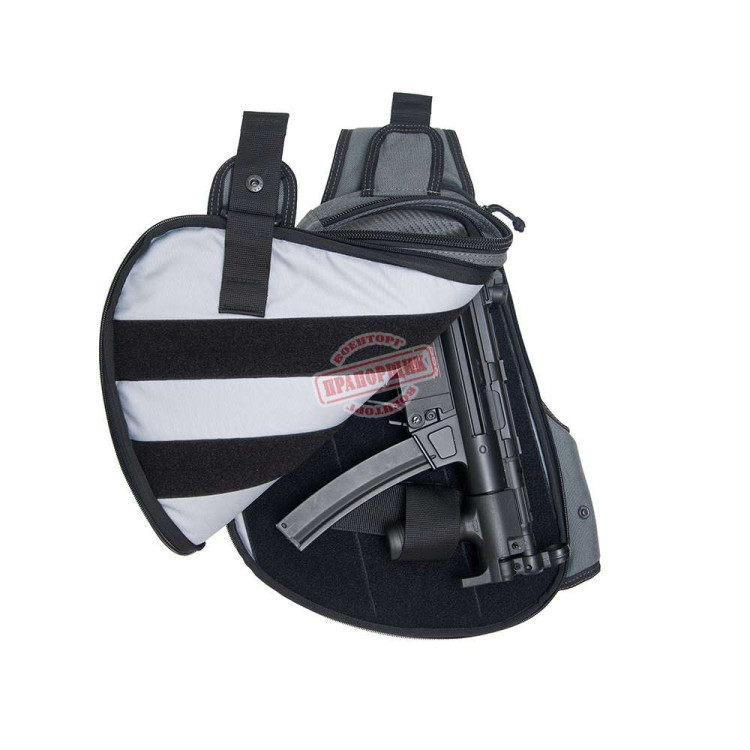 Лямка регульована за довжиною для адаптації під зріст власника, при цьому навантаження рівномірно розподіляється завдяки анатомічній формі ременя та м’якій демпфуючій вставці на спинній частині. Конструкція забезпечує швидке перенесення зі спинної зони на грудну завдяки єдиній діагональній стропі, формуючи мобільний формат носіння. Колірне виконання Graphite орієнтоване на нейтральний зовнішній вигляд, мінімальний візуальний контраст та відсутність відблисків. Модель розрахована на щоденну експлуатацію силовими підрозділами, цивільними стрілецькими секторами та охоронними структурами, де потрібне приховане перенесення тактичного комплекту без візуального акценту.